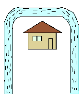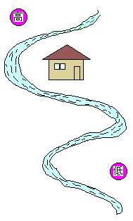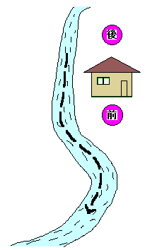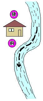 川、つまり水のエネルギーは、敷地に大きな影響を与えるのです。また、道路は川に例えられます。 |