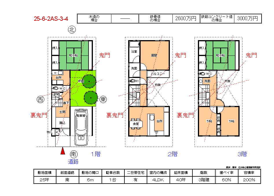 敷 地 (25坪) 3階建-4LDK、間口6m