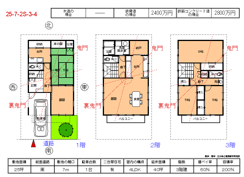 敷 地 (25坪) 3階建-4LDK、間口7m