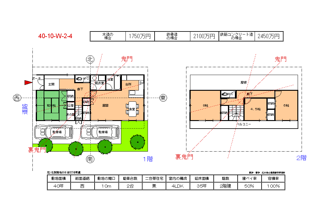 敷 地 (40坪) 2階建-4LDK、間口10m