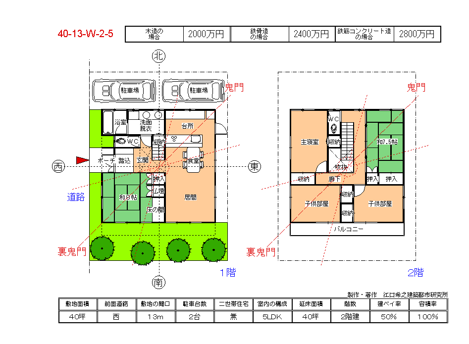 敷 地 (40坪) 2階建-5LDK、間口13m