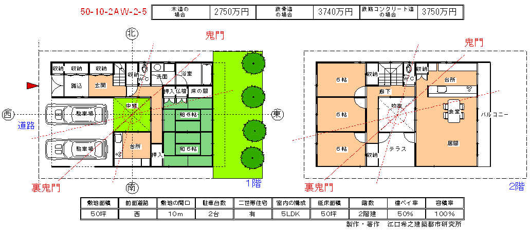 敷 地 (50坪) 2階建-5LDK、間口10m