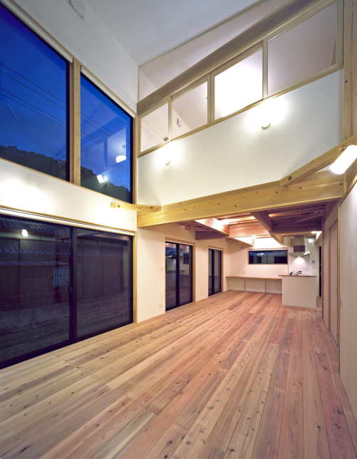 LDKの居間上部は、大きな吹抜になっているために、非常に開放的なつくりになっています。