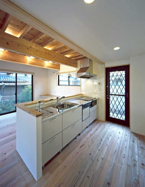 対面キッチンの正面には、食卓テーブルが設置されます。