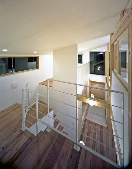 正面には玄関上部の吹抜、左には1階から2階へ繋がる階段があります。