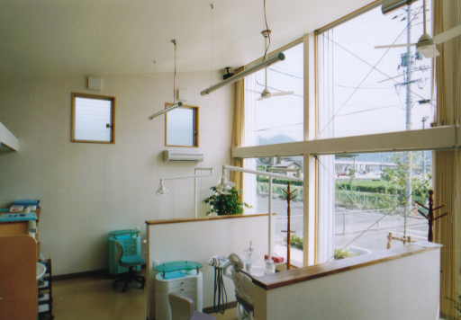 診察室です。高い天井には、シーリングファンを取り付け、空調に配慮しています。