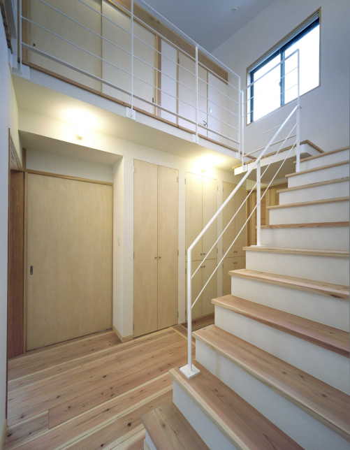 右手には2階への階段が見えています。
