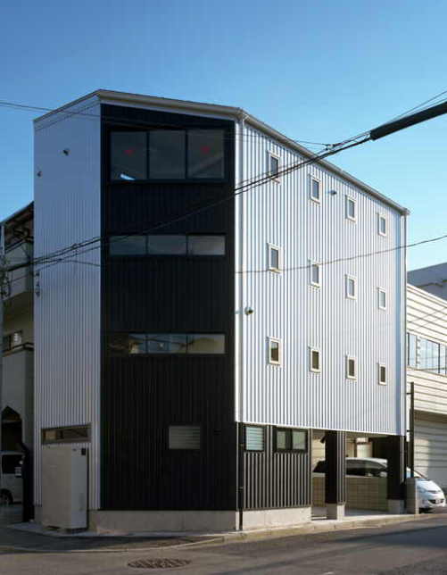 1階が鉄骨造、2,3階が木造の、3階建て住宅です。1階には、自動車1台分の駐車スペースがあります。