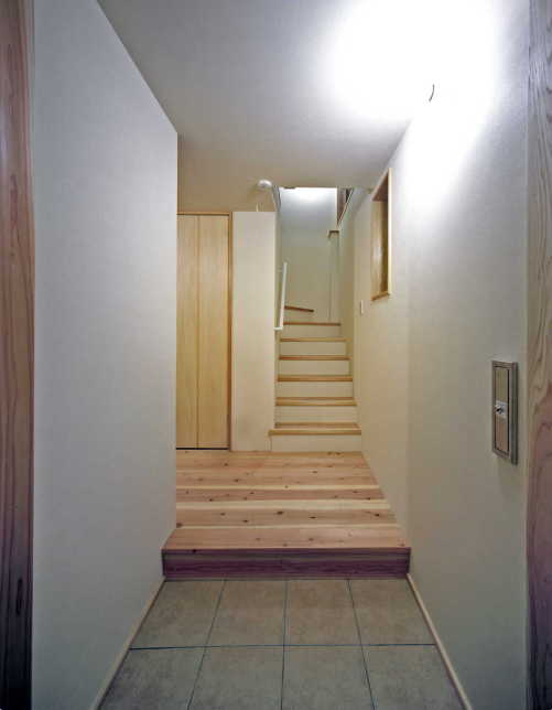 玄関を入ると、正面に上階へと繋がる階段があります。