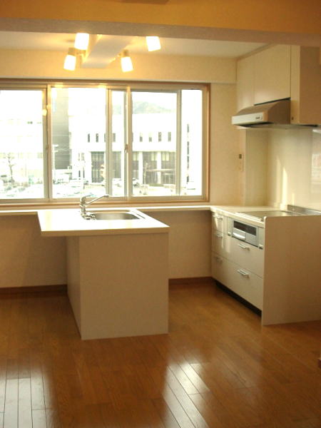 キッチンです。分譲住宅では珍しい、2列型を採用しています。