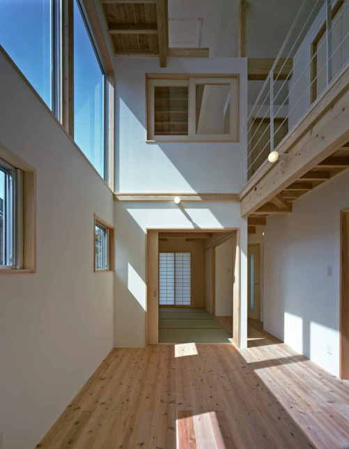 上部吹抜けにある、南西面の大きな窓からは、たくさんの光が差し込んでいます。